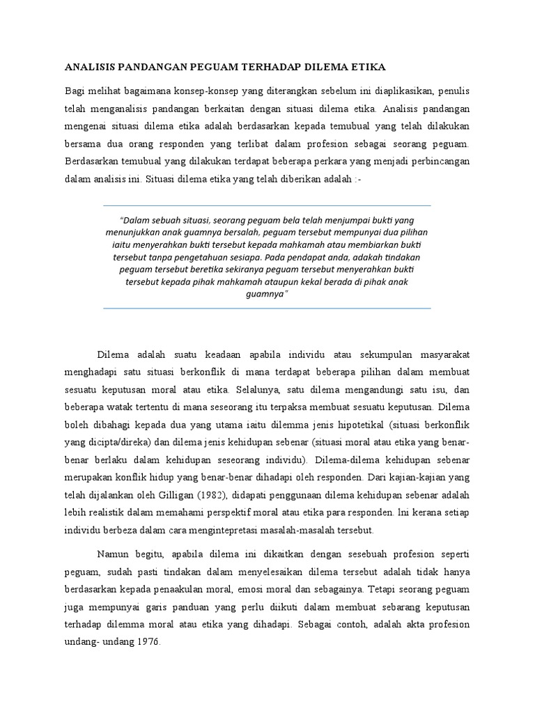 Analisis Pandangan Peguam Terhadap Dilema Etika