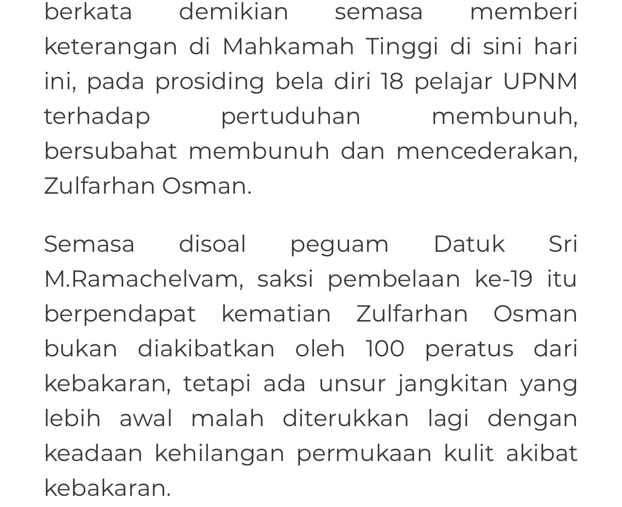 Keputusan Kes Bunuh Zulfarhan Osman Tertuduh Perlu Bela Diri Atau Sebaliknya