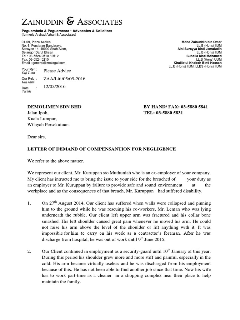 Letter Of Demand Shoulder Duty Of Care