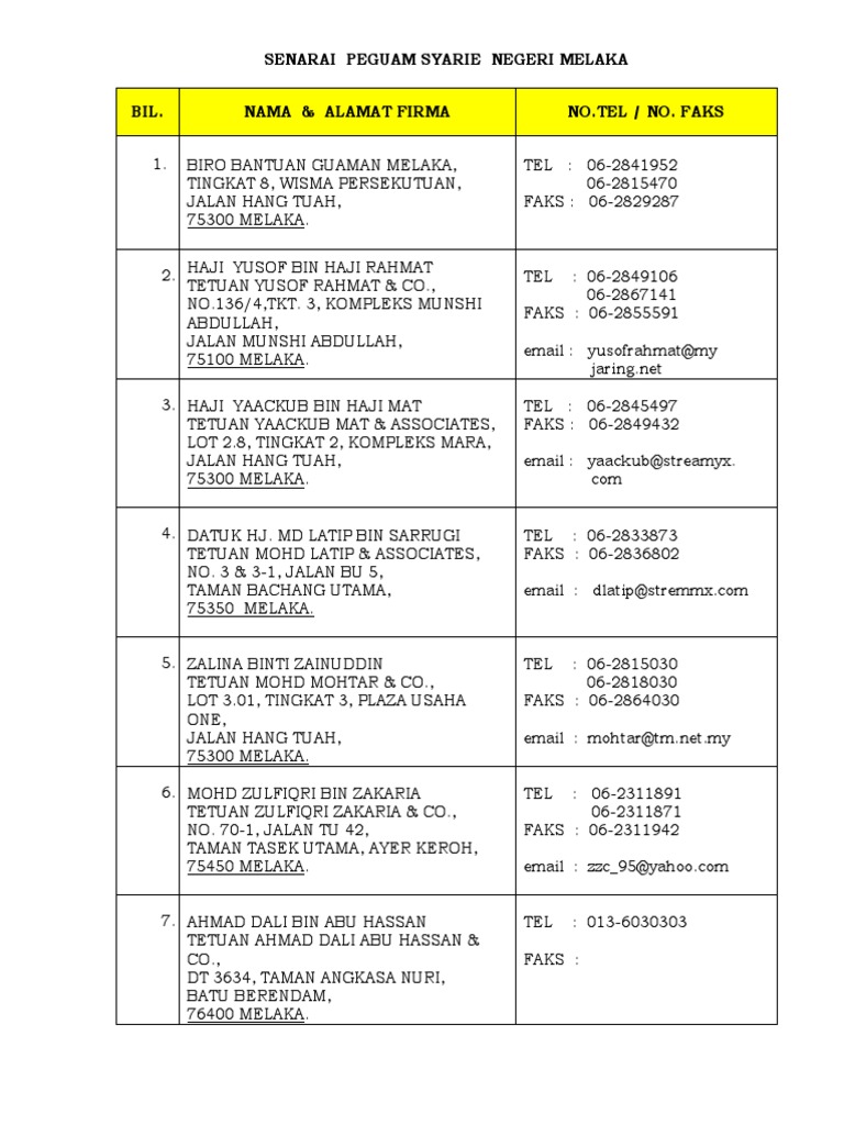 Melaka Tetuan Haris Ali. Law Firm AWAN Ampang Political Organization Peguam Syarie Perak Lawyer. 20201122 Data dan maklumat peguam syarie yang beramal ini boleh diperoleh daripada Setiausaha Jawatankuasa Peguam Syarie di setiap negeri katanya dalam satu kenyataan.